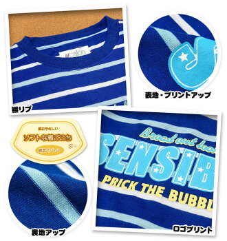 【送料無料】男児 キッズ 天竺 長袖 パジャマ 上下組 薄手 綿混 肌にやさしいソフトな着ごこち ボーダー柄 ロゴプリント 子供服 男の子 120cm a-2149c-nv【メール便対応】